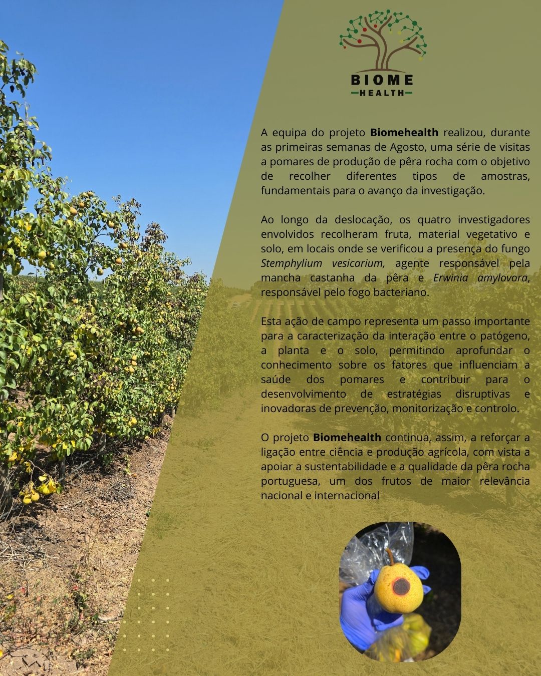 Researchers from REQUIMTE/UP involved in the BIOMEHEALTH project carried out fieldwork in August in the Oeste region of Portugal to collect plant material from pear trees and soil. – A step forward in the characterization and control of Erwinia amylovora and Stenphylium vesicarium –