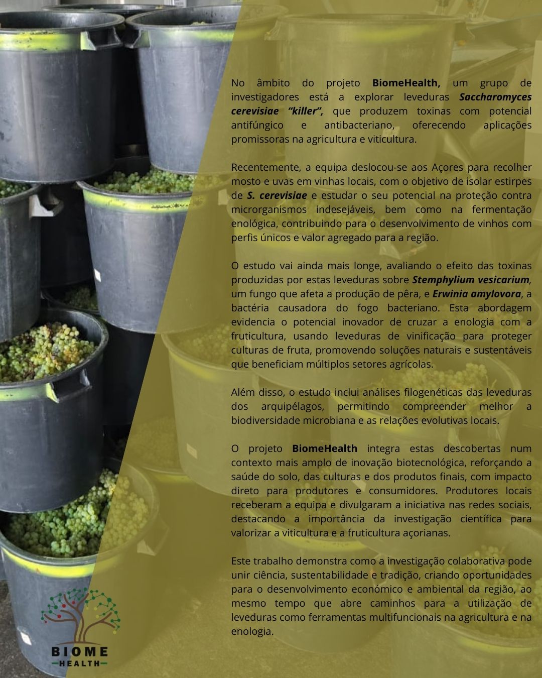 Researchers from REQUIMTE/UP involved in the BIOMEHEALTH project were in the Azores to isolate Saccharomyces cerevisiae and its "killer" virus to fight against Erwinia amylovora and Stenphylium vesicarium – Novel toxin's solutions are expected soon...